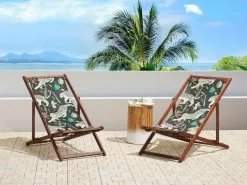 Beliani Tumma Akaasiapuinen Aurinkotuoli MonivÀrisellÀ Lehtikuviokankaalla 2 Kpl ANZIO