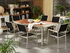 Beliani 6-istuttava Ulkoruokailuryhmä Eukalyptuspuutaso Polyrottinkituolit Musta GROSSETO