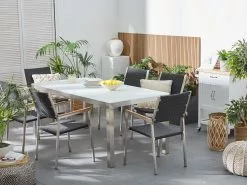Beliani 6-istuttava Ulkoruokailuryhmä Lasitaso Polyrottinkituolit Valkoinen/musta GROSSETO