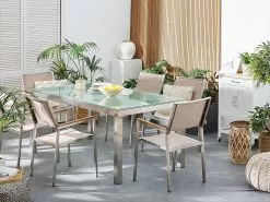 Beliani 6-istuttava Ulkoruokailuryhmä Lasitaso Tekstiilituolit Beige GROSSETO
