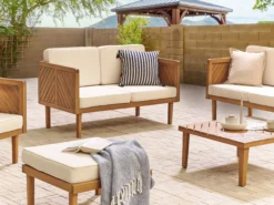 Beliani 2-istuttava Ulkokulmasohva Akasiapuu Vaalea Puu TIMOR II