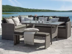 Beliani 8-istuttava Ulkosohvaryhmä Polyrottinki Harmaa VITERBRO