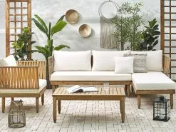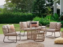 Beliani 4-istuttava Ulkosohvaryhmä Polyrottinki Beige RAVELLO